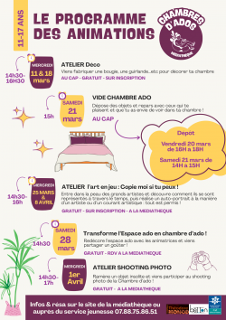 Renseignements et inscriptions auprès du service jeunesse au 07 88 75 86 51
